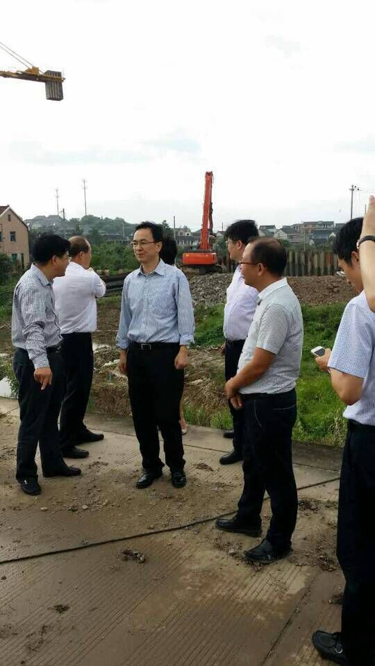7月9日下午,寧波市委常委、副市長、宣傳部長萬亞偉在寧海縣縣委領導陪同下,親臨毛嶼港新閘防臺抗洪第一線,指導防洪搶險工作。