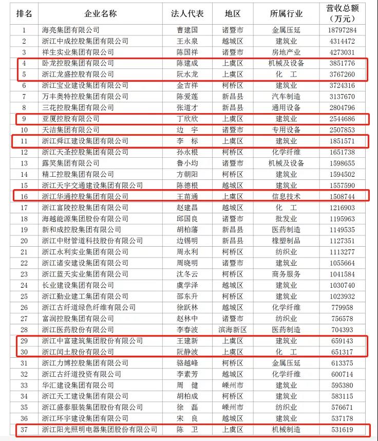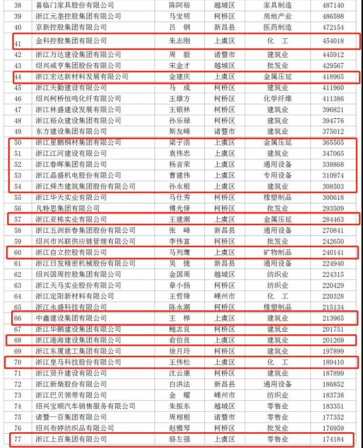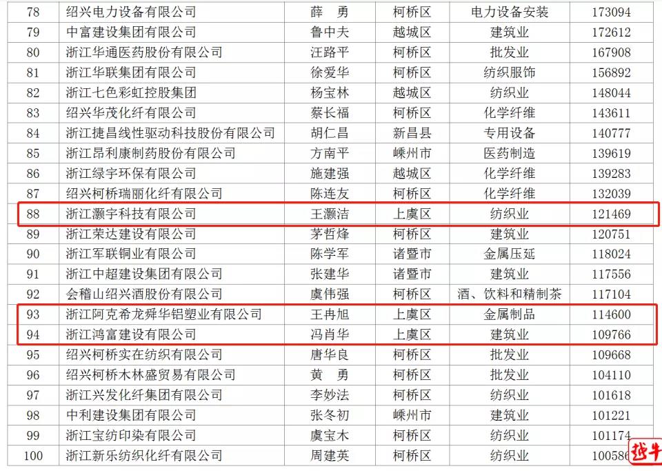 公司榮登2020紹興民企百強榜單