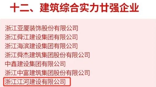 浙江江河建設有限公司獲得“建筑綜合實力廿強企業”,董事長袁偉忠獲得“建筑業優秀企業家”稱號,副總裁李京利獲得“優秀專技人才”稱號。